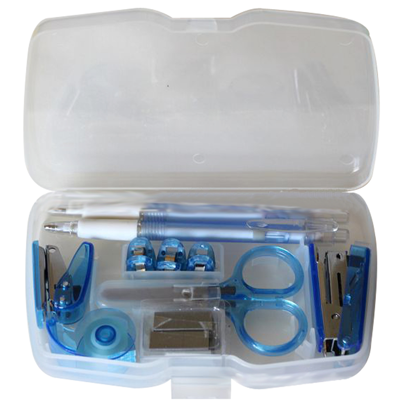 This compact PP stationery set includes a pen, stapler, scissors, staples, tape, and more—perfect for school, travel, or desktop use. Its portable design makes it ideal for both kids and professionals on the go. A custom logo can be printed on the box for enhanced brand exposure.