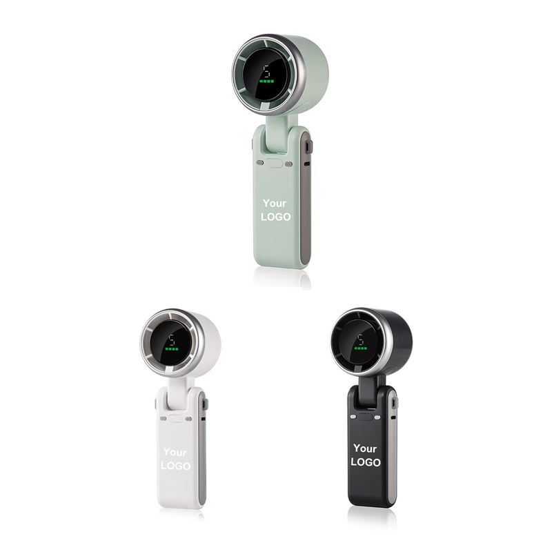 Compact and stylish mini fan with a foldable design for easy portability. Made of durable ABS material, it features a built-in digital display and 5 adjustable speed levels for customized cooling. Comes with a lanyard for convenient hands-free use around the neck. The 1200mAh rechargeable battery provides 3–4 hours of use and charges via Type-C. Quiet, lightweight, and ideal for home, office, travel, and outdoor activities. Custom logo available.