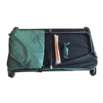 This tent is made of aluminum tube, 600D polyester and mesh, keep the bed off ground, the capacity is 400lbs