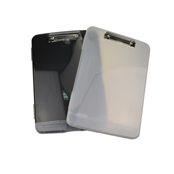 This PP box features a clipboard top and a pencil box bottom. It clips and stores documents in one convenient unit.