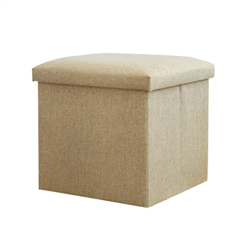 Made of cotton and non-woven fabric, this foldable ottoman features a cushioned top and spacious storage. Ideal for organizing home or office spaces with comfort and style.
