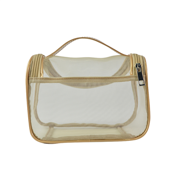 Leather Mesh Cosmetic Handle Bag