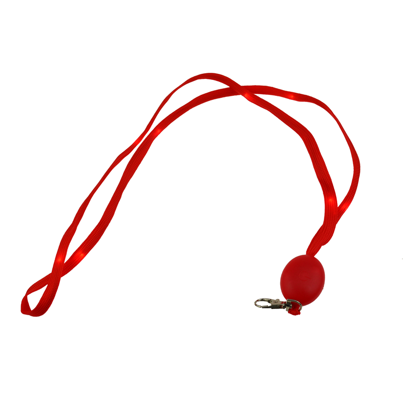This LED lanyard lights up with the press of a button. Multiple LED colors including red, blue, yellow, green, pink, and white are available for vibrant event visibility.