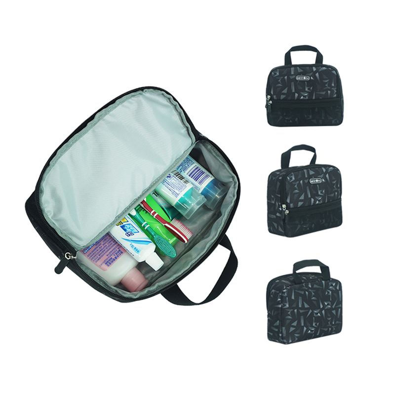 Made of Oxford cloth, mesh, and polyester. This printed handle cosmetic bag is both stylish and practical—great for daily use or as a travel essential.
