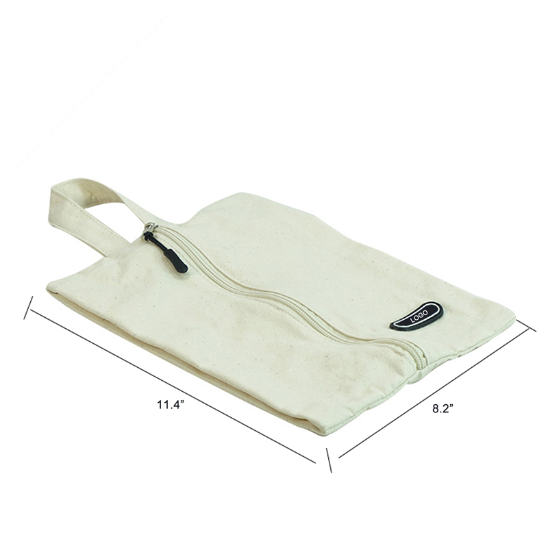 Made of durable canvas, this zippered shoe bag is great for storing footwear while traveling. Comes with a side strap for easy carrying.