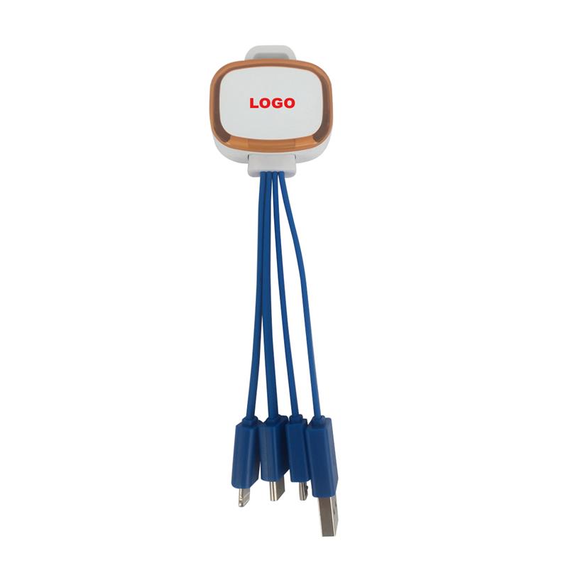 Made of TPE and ABS, this 4-in-1 charging cable includes USB, Micro, Type-C, and Lightning connectors. Great for travel and everyday use. Custom logo available on the shell.