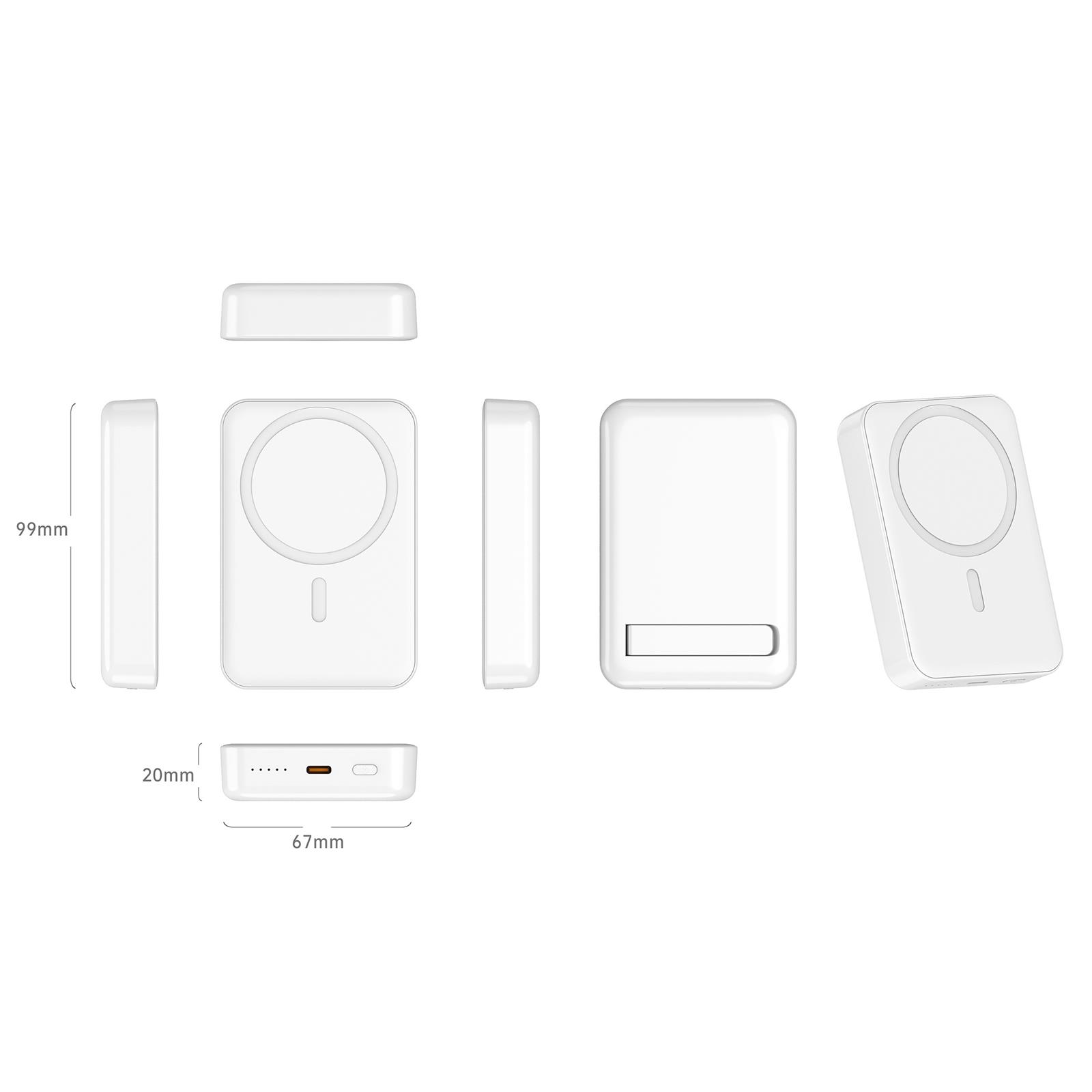 This 10000mAh power bank supports 20W PD fast and 15W wireless charging. The magnetic suction keeps your device stable during charging. Built-in stand allows convenient viewing. Great for travel or desk use. Logo can be printed on the surface of silicone.