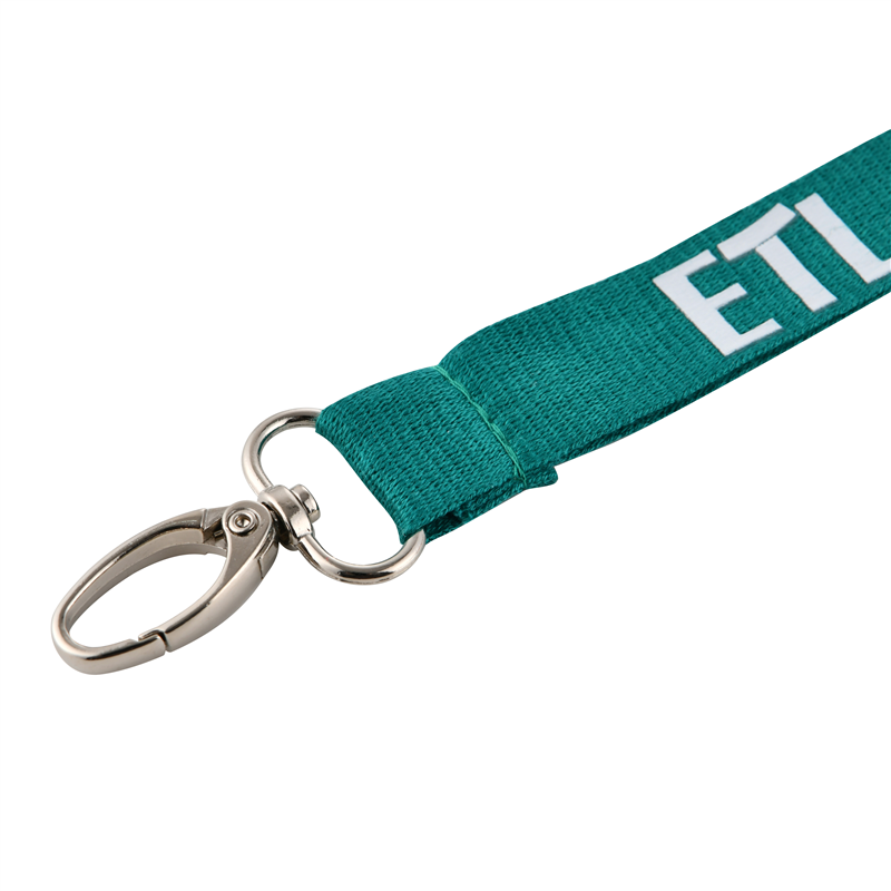 This eco-friendly lanyard is made of sustainable bamboo fiber, featuring a safety breakaway buckle and metal hook for badge or key use. Ideal for eco-conscious events and organizations.