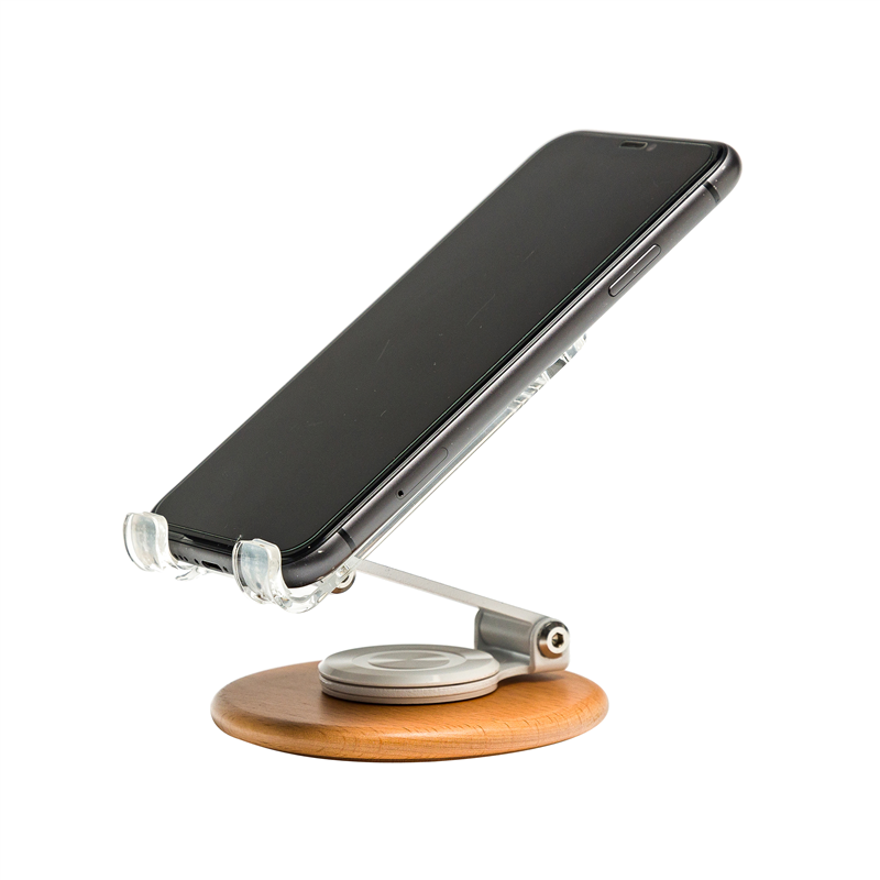 Clear Acrylic Adjustable Phone Stand with Wooden Base