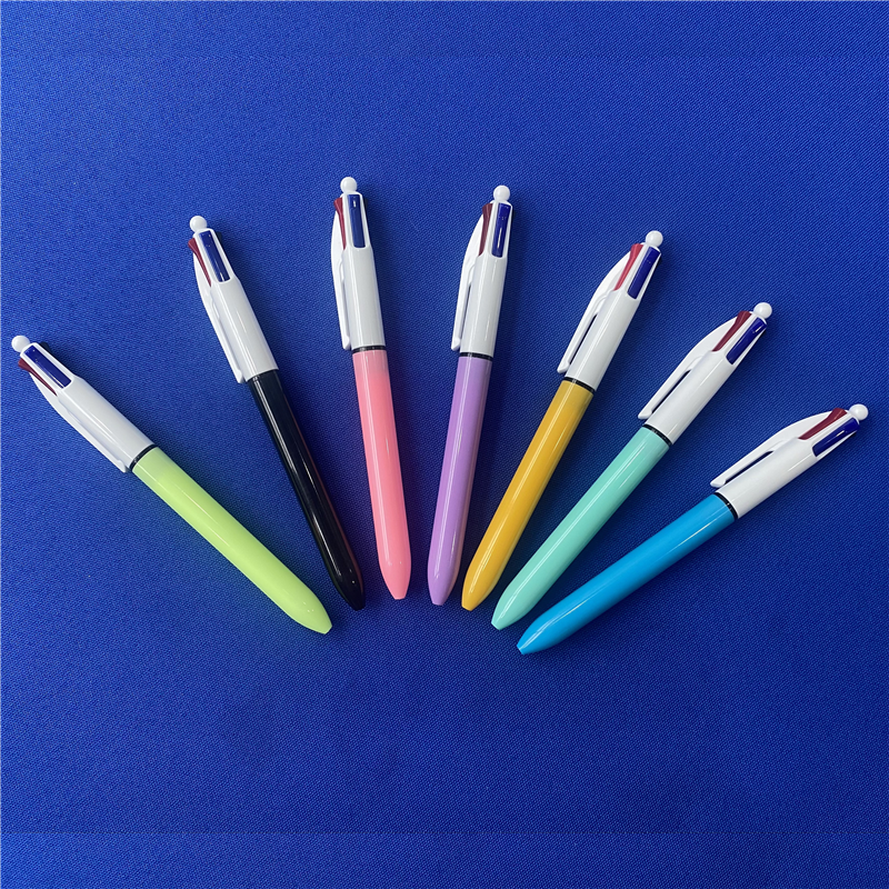 This multi-color ballpoint pen is made of durable ABS plastic and features four ink colors (red, blue, black, green). The handy clip makes it great for school, office, or promotional giveaways.