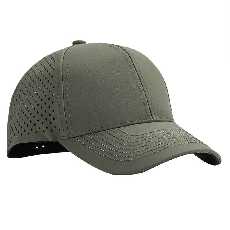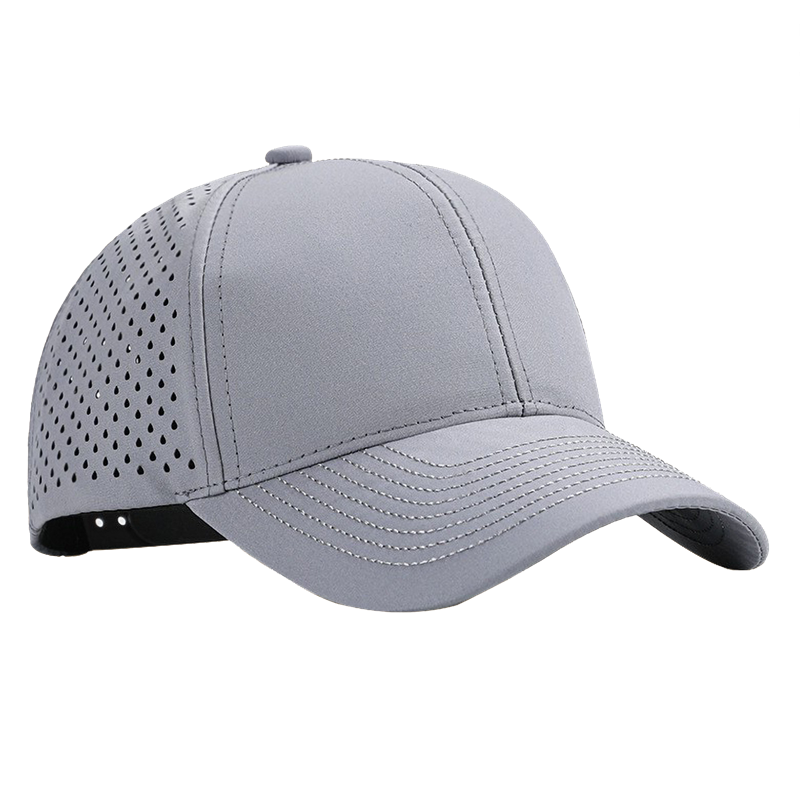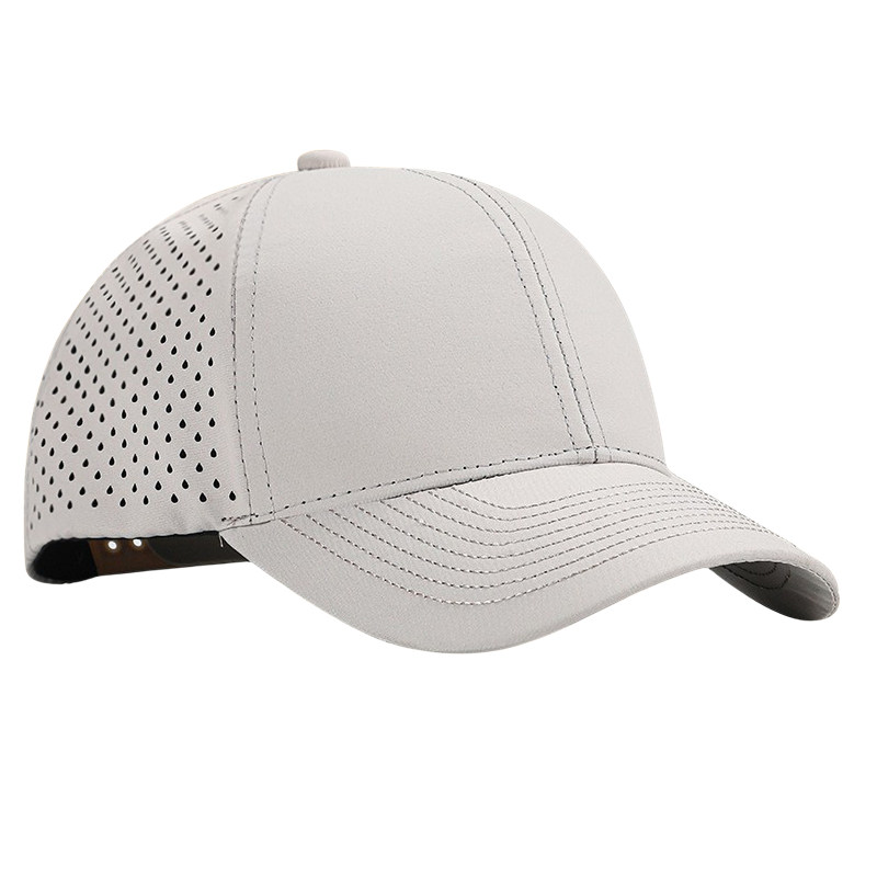 This performance baseball cap features laser-cut perforated side panels for optimal breathability. Made of lightweight moisture-wicking fabric, it offers a structured 6-panel design, pre-curved visor, and adjustable snapback closure for a comfortable fit. Ideal for sports, outdoor promotions, and active lifestyle branding.