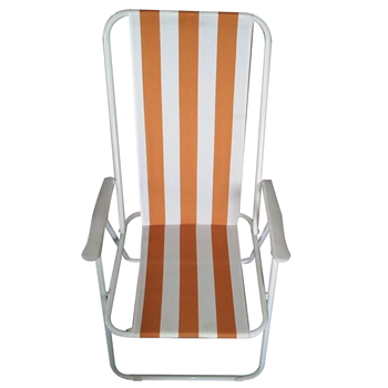 This foldable chair features a durable iron frame and striped fabric seat—perfect for camping, picnics, and outdoor events. Easy to carry and set up, with custom logo printing available.