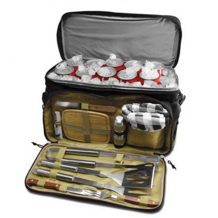 This all-in-one BBQ cooler set is made of durable polyester and stainless steel. The insulated compartment holds up to 10 cans, while exterior pockets store essential grilling tools. A sturdy handle makes it easy to carry—perfect for tailgates, picnics, or outdoor events. Custom logo printing available.
