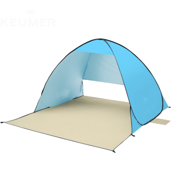 This portable beach tent is made from durable 190T waterproof polyester with a silver-coated fabric for full UV protection. Perfect for the beach, park, or outdoor events, it provides all-day shade and comfort. Includes a carry case for easy transport. Custom logo printing available on the sides.