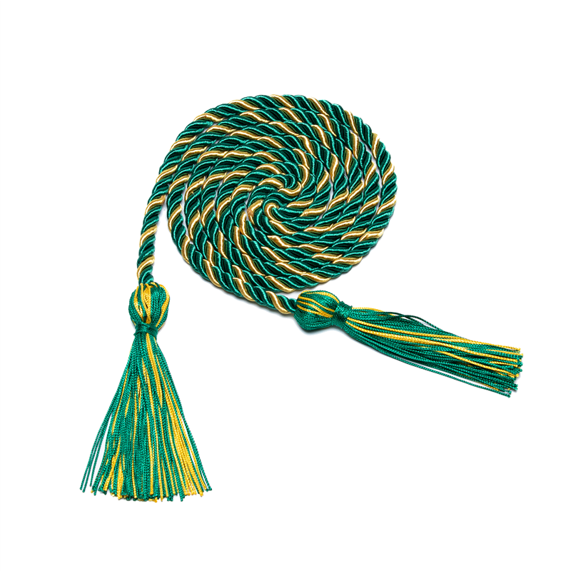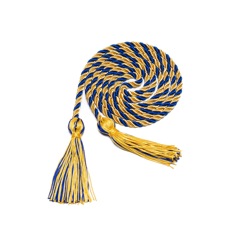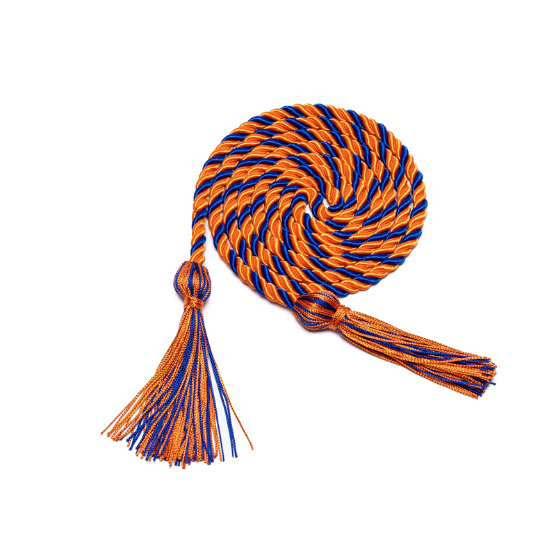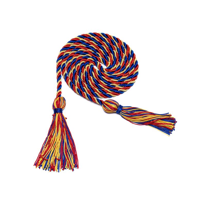 Celebrate academic success with this elegant honor cord made of durable polyester. The 68" twisted rope features decorative 4" tassels at both ends. Available in various colors and can be customized to match school branding. A perfect accessory for commencement ceremonies.