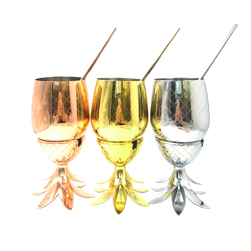 Made of stainless steel, this 17oz pineapple cup features a removable top that doubles as a leafy pedestal when inverted. Eye-catching and functional, it’s great for events or travel. Logo and name can be engraved.