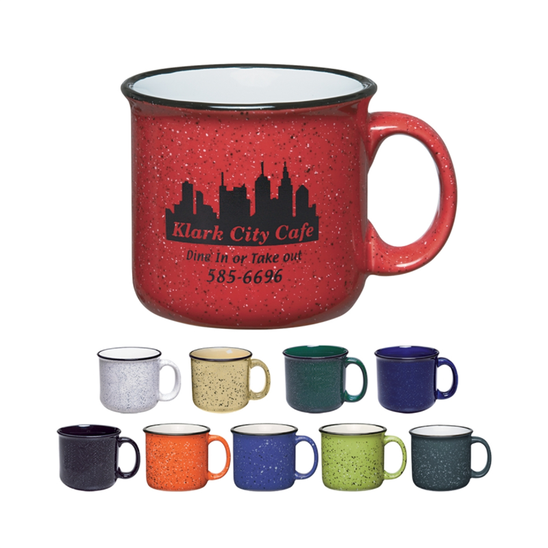 This ceramic coffee mug features an enamel-look design and a durable build. Sized at 3.15" x 3.15", it's customizable in both size and color—great for everyday use or promotional branding.