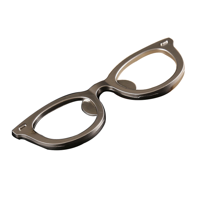 This stylish glasses-shaped bottle opener is made of durable zinc alloy. It can be used comfortably with either hand and is perfect for adding fun to any gathering. Company logo and name can be engraved.