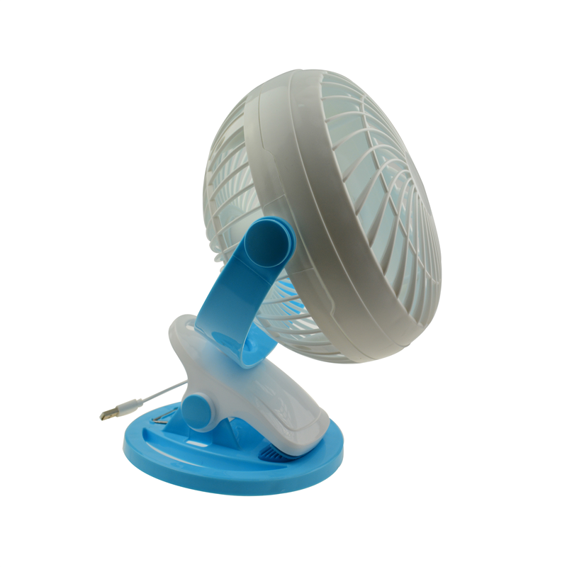 This clip fan is made of PP and features a 1200mAh rechargeable battery. Just charge it with the included USB cable and clip it where you need a breeze—on a desk, stroller, or tent.