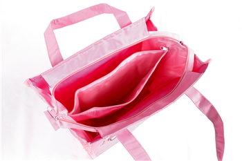 This 600D polyester tote features a zippered main compartment and mesh bottle pocket—perfect for school or play. Great for girls and kids' promotions.
