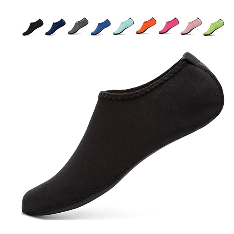 Made of polyester and rubber, these soft beach shoes are ideal for swimming, yoga, and more. Lightweight, flexible, and available in assorted colors and sizes.