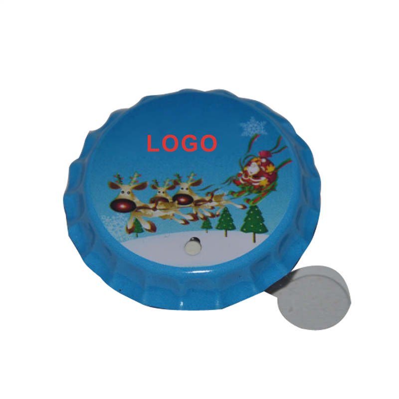 Made of tin, this flashing LED pin features a bottle cap shape and customizable logo—perfect for parties, night events, and promotional giveaways.