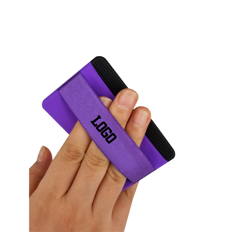 This wallet is made of stretchy Lycra with a secure 3M adhesive. It fits most flat-back phones and holds cards, keys, and more. The elastic grip band ensures a firm hold during use.