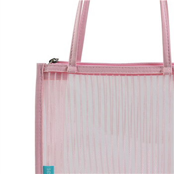Made of mesh and patent leather, this fashionable pink tote bag is great for everyday use, shopping, or giveaways.