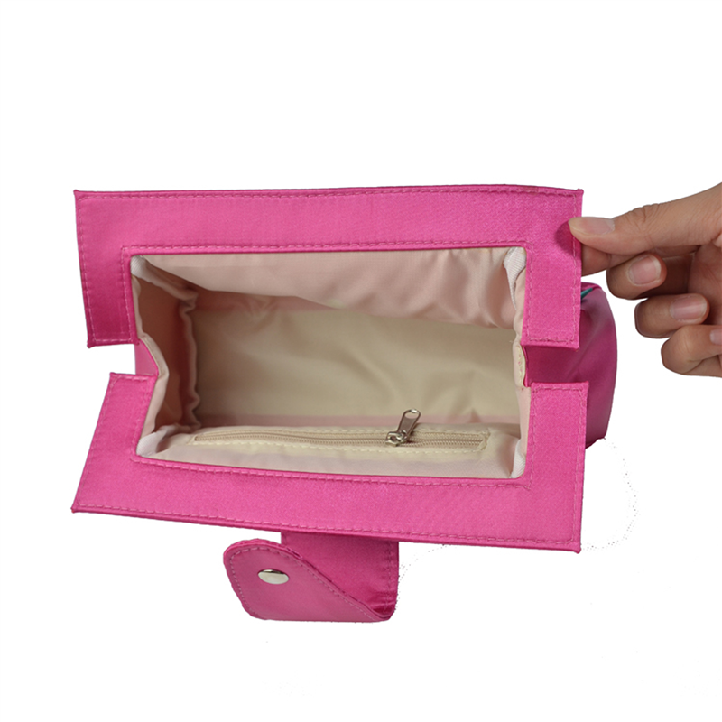 Made of satin and polyester. This foldable cosmetic bag is a smart choice for travel, gifts, or brand promotions.