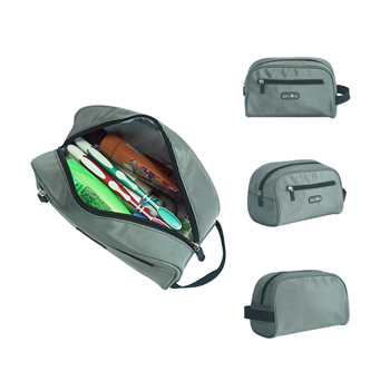 Made of 600D polyester, PVC, and mesh, this compact cosmetic bag is great for travel or daily use. Zippered closure keeps items secure.