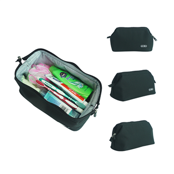 Made of PVC and mesh. This spacious cosmetic bag is perfect for travel or home use, offering plenty of room for personal items.