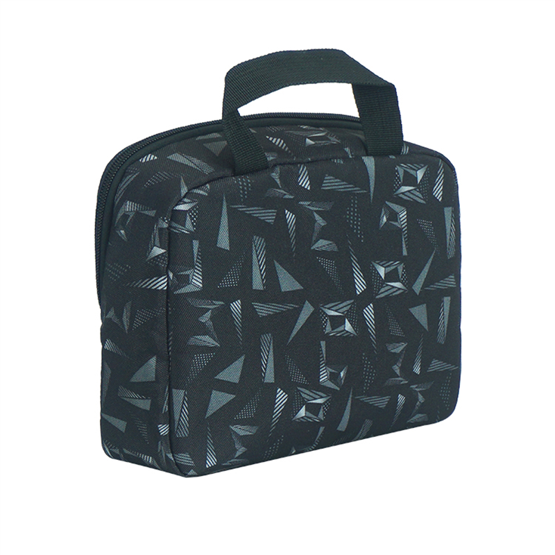 Made of Oxford cloth, mesh, and polyester. This printed handle cosmetic bag is both stylish and practical—great for daily use or as a travel essential.