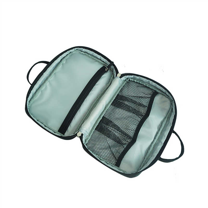 Made of Oxford cloth, mesh, and polyester. Features a top handle and compartments to neatly store personal items—ideal for travel or daily use.