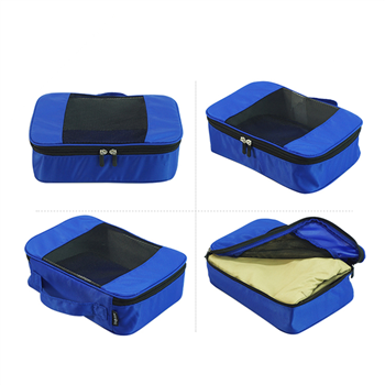 This packing cube is made of durable polyester and breathable mesh, ideal for organizing shirts and travel essentials. Great for travel promotions.