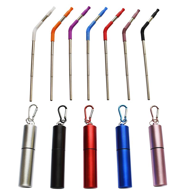 Includes a reusable stainless steel bent straw with silicone tip, cleaning brush, and a carabiner—conveniently stored in a compact case.