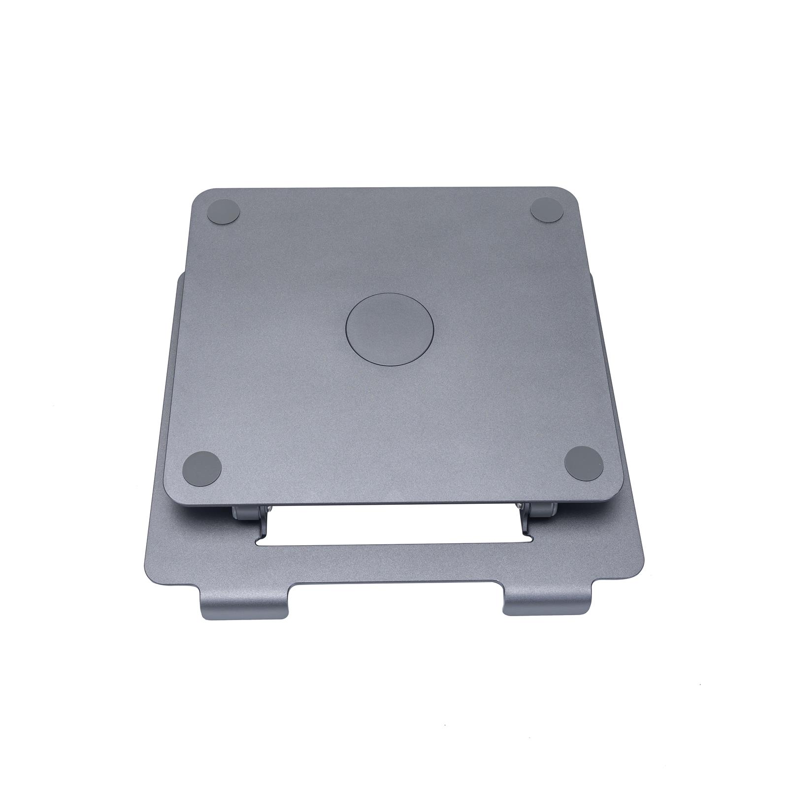 This aluminum and silicone laptop stand features 360° base rotation and adjustable height from 38mm to 190mm. Its wide cooling slot boosts airflow, while the foldable design is light and easy to carry.