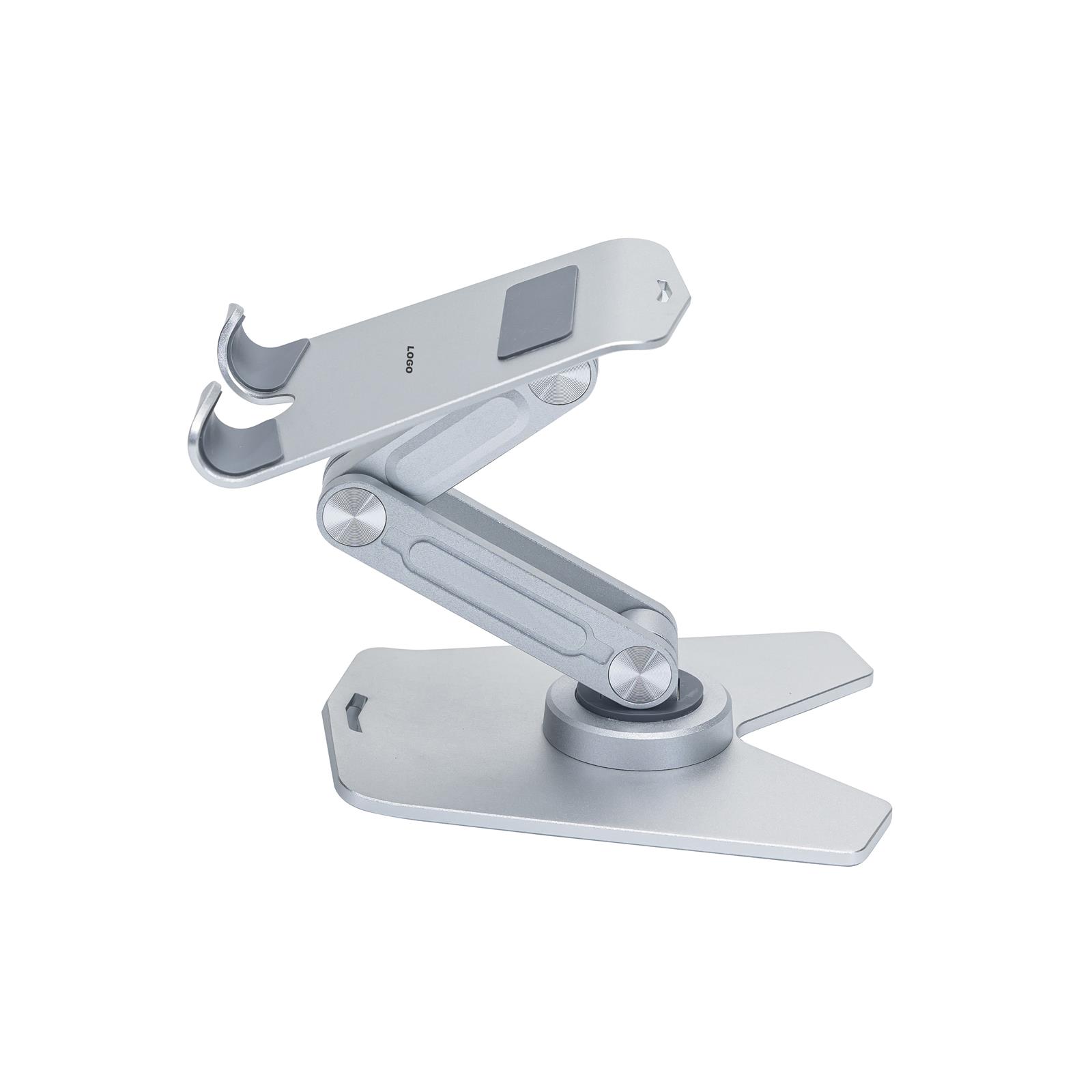 This aluminum and silicone phone holder features a 360° rotating base for flexible viewing angles. The foldable design and adjustable height enhance portability and comfort for desktop or travel use. Thickened support bars ensure greater stability.