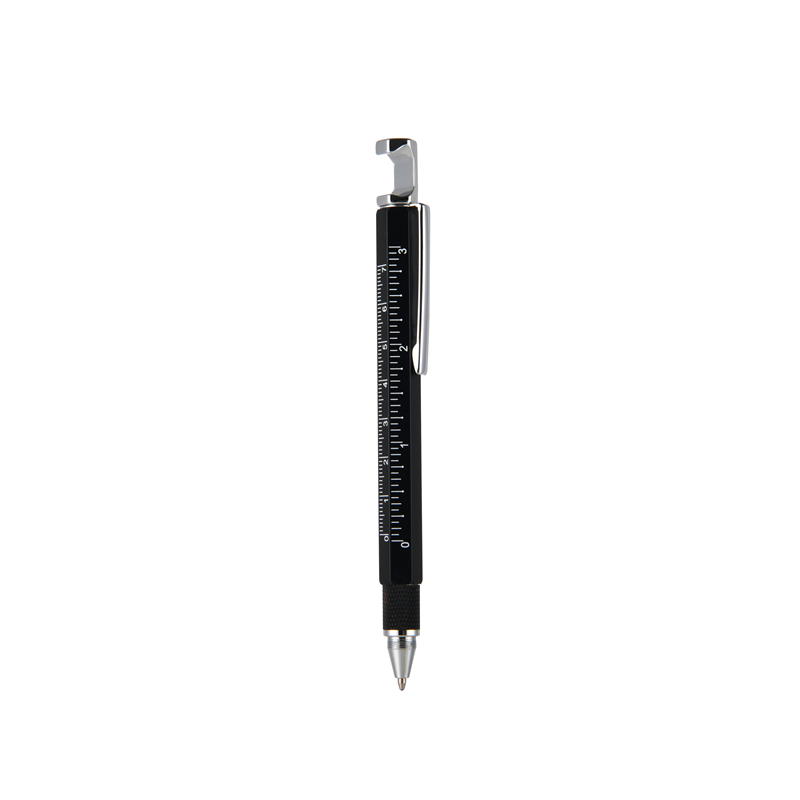 This 6-in-1 stylus tool pen is made of durable metal and features a stylus tip, ballpoint pen, ruler, bottle opener, flathead & Phillips screwdriver. A handy tool that fits right in your pocket.