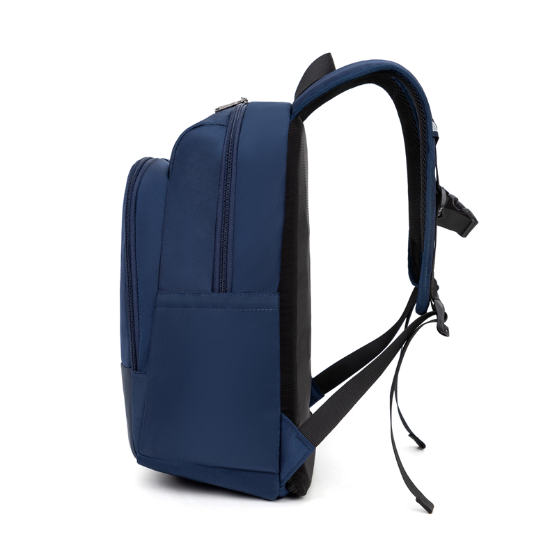 The Smart Semiconductor Cooling Backpack keeps you cool during hot-weather travel, commuting, and outdoor activities. It features a USB-powered semiconductor cooling system that reduces surface temperature by up to 18 degrees Fahrenheit, using a high-efficiency fan and over 1000 air vents for all-day breathability. The removable cooling unit allows easy conversion to a lightweight everyday backpack. Simply connect a power bank (not included) to activate cooling via the USB port and one-touch control. Weighing under 2 lbs, it's made from waterproof oxford fabric with EVA-padded shoulder straps, a chest buckle, and reflective strips. It fits a 14" laptop and daily essentials, with extra pockets for organization. Available in Navy Blue, Wine Red, and Light Purple.