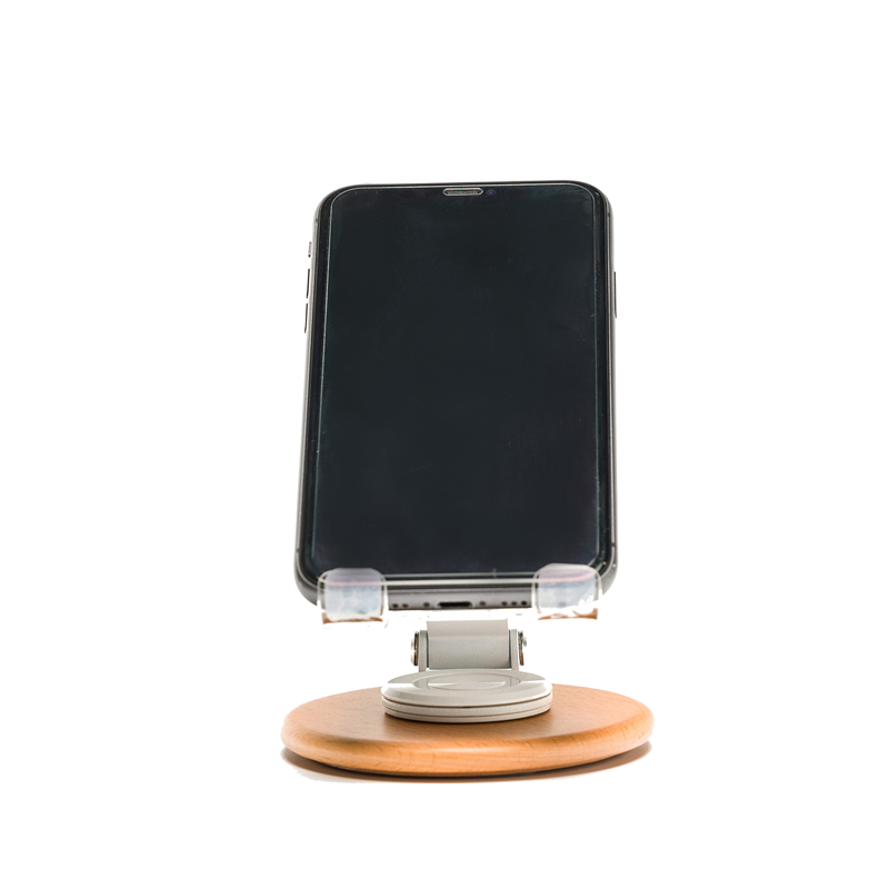 Clear Acrylic Adjustable Phone Stand with Wooden Base